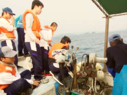 鷹島に到着し,いよいよ「ほんなもん体験」始まりです。