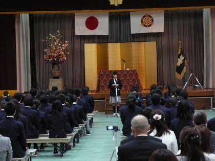 今日の入学式には在校生は代表生徒の参列でしたが、来週12日には、全校生徒が集まった「新入生を迎える会」があります。楽しみにしておいてください。