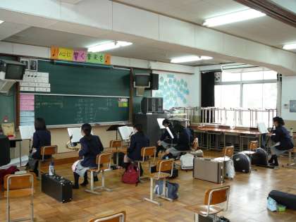 校舎では吹奏楽部がパート練習中です。