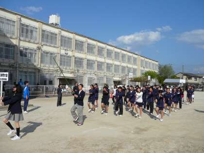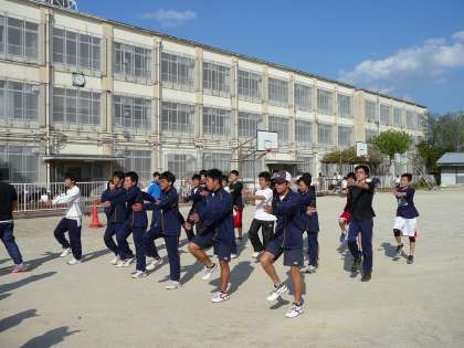 4月29日の春季大会開会式に向け、体育会系部活動の代表生徒による行進練習が行われました。