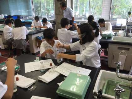 1組は,メッキについて学習しています。メガネをつけて本格的です。