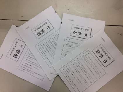 大淀中学校も1時間目〜4時間目までを国語AB・数学ABの調査を行い、5時間目は質問用紙に答えてもらいます。1日がかりで3年生は大変ですが、全国の同じ中3生が頑張っていますから、みんなも最後まであきらめず1問でも多く答えられるよう頑張ってください!