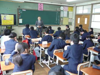本日6時間目1年生は、警察官OBのスクールサポーターに来ていただき、クラス毎に「非行防止教室」を行いました。