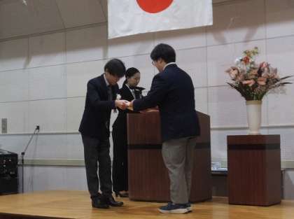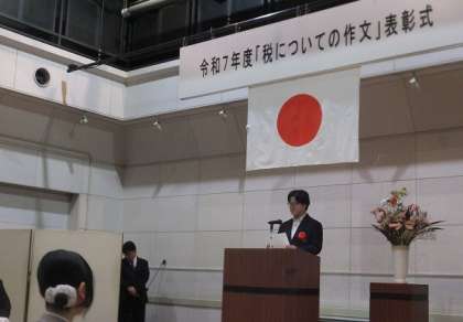 12月17日(水)中学生の「税についての作文」受賞者の表彰式が、京都市呉竹文化センターで行われました。本校3年のOさんは、全国納税貯蓄組合連合会優秀賞という、すばらしい賞を受賞しました。授賞式の場では、約30名の受賞者を代表して作文を朗読するという大役を,落ち着いた態度と堂々とした声でやり遂げてくれました。税が私たちの生活や社会をどのように支えているかを、自分の言葉で分かりやすく伝えようとする姿勢は、会場にいた多くの人の心に届いていました。