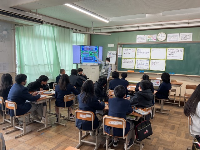 今日は身近なところにあるユニバーサルデザインを知ることで、障がいのある人もない人も、小さな子どもも、杖をついたお年寄りも、どんな立場の人も住みやすい社会を作ることの大切さを学ぶ授業でした。実際に淀の町にある病院の自動販売機の写真を見て、誰にとっても使いやすいための、どんな工夫がなされているかをグループで話し合ったり、他にも身近にはどんなユニバーサルデザインがあるかを出し合いました。今日、みなさんが気付いた優しい工夫が、さまざまな立場の人にとっての「社会のバリア」をなくしてくれます。そんな社会を作る一員として、自分にできることは何だろうと考え続けてみてください。