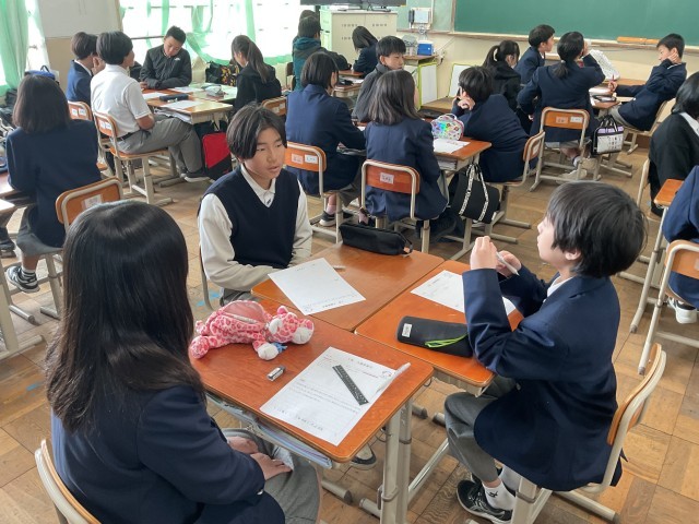 今日の4時間目、1年生は人権学習でした。授業の初めに、1年生の学年目標である「心の痛みに気づく」こと、そのために自分とは違う、さまざまな立場の人の状況を「知る」ことから始めよう、というお話がありました。