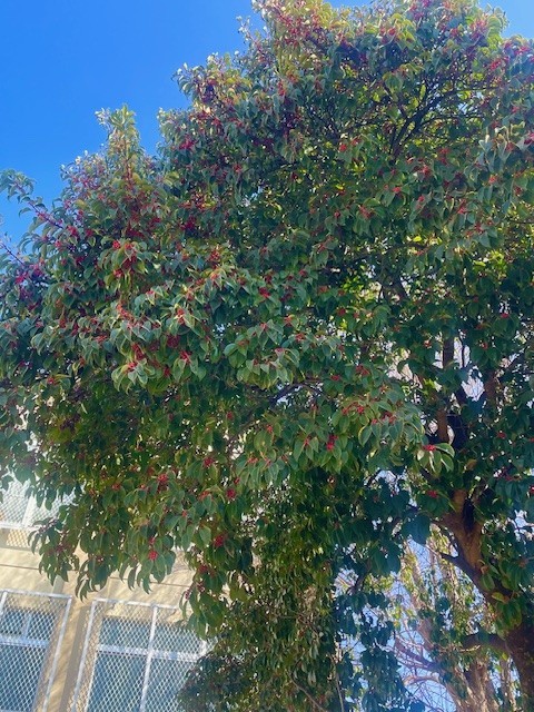 * 写真はグラウンド東側に立っているクロガネモチの木です。花言葉は「寛容」「明るい未来」