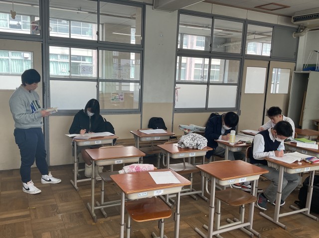3年生は今日、多くの人が公立前期選抜入試に行っています。登校してきた人たちは、2時間、自学自習などをして下校しました。自習の教室は人数が少なかったですが、これからの受験に向けて頑張っていました。