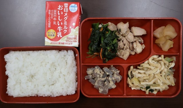 今日の給食は、みんなが好きな鶏肉の照り焼き。1年生2年生は学年末テストのため給食はありません。残念。きつね丼の具はご飯との相性が抜群です。ほうれん草の煮浸しとこんにゃくのごまみそあえは栄養満点。デザートにはリンゴのコンポート。柔らかくなるまでじっくり煮込まれています。来週の給食が何か今から楽しみです。