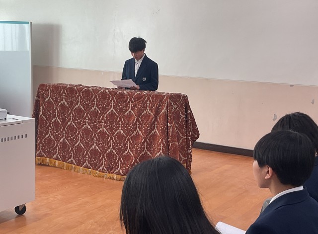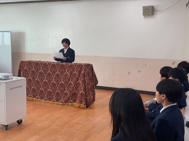 今日の4時間目は今年度最後のトークイン大淀の時間でした。インフルエンザ蔓延防止のため、残念ながらオンラインでの開催でしたが、発表する人は緊張感をもって臨んでくれました。教室で聞いていて人たちも、同級生が、先輩が、後輩が、どんな話をしてくれるのか、興味を持って聞いてくれたと思います。今日のテーマは、1年生は「クラスに向けて」、2年生は「学年に向けて」、3年生は「全校生徒に向けて」でした。学校祭を通してクラスがまとまったこと、学校を休んでいた自分を学年の仲間が待っていてくれたこと、挑戦したことで強くなれたこと、自分を受け入れてくれたみんなとの出会いへの感謝・・・・どの発表にも、飾らない心からの言葉が並んでいました。全員に共通していたのは、このクラスが好きだ、この学年が好きだ、この学校が好きだという、クラス愛、学年愛、学校愛でした。自分のホームである場所を愛せるのは、そこで得たつながりを大切にできた証拠です。最後にオンラインで手を挙げた何人もの3年生が後輩に向けて、行事を通して絆を深め、仲間を大切にしてほしいと言っていたのが印象的でした。