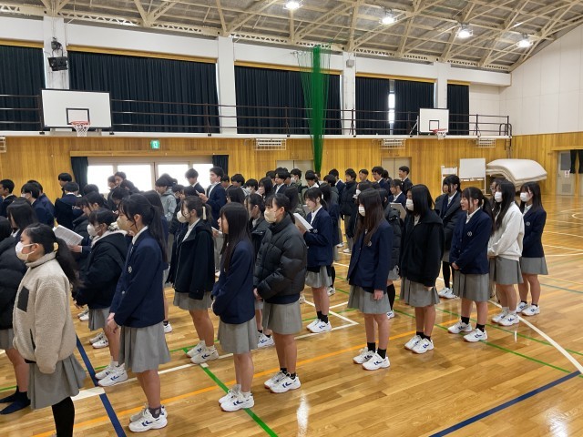 どの学年も、3年生を送る会に向けての取組を頑張っています。今日の3限、2年生も体育館で合唱の練習をしていました。男子は声変わりが終わった人も多く、安定した響くいい声が出ています。女子は鈴の鳴るような澄んだきれいな声で歌っていました。歌声と曲想がよくあっていて、もっと聞いていたいと思う合唱でした。送る会では、きっと3年生も喜んでくれると思います。先輩に向けて、そして学年の仲間に向けても、精一杯の気持ちを歌詞に載せて届けられると良いですね!頑張れ、2年生!