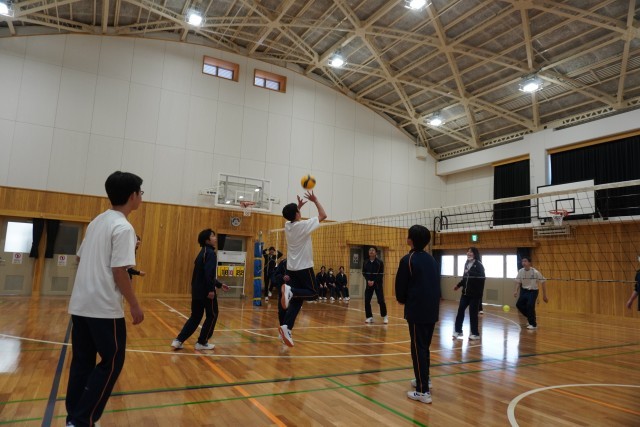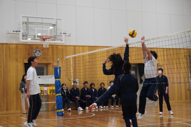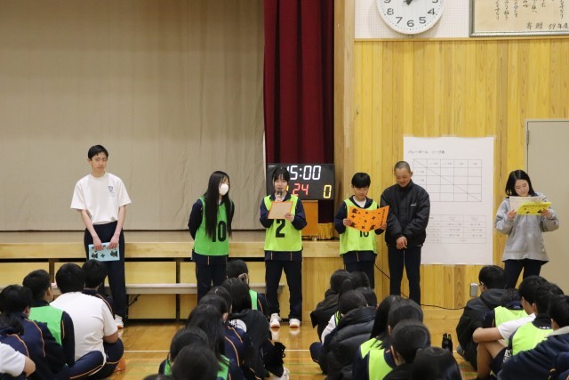 2年生は5・6時間目にクラス対抗の球技大会を行いました。 種目は男女混合のバレーボールと男女別のキックベースです。 バレーボールでは勢いあるサーブや鋭いスパイクなどが炸裂し、体育館は大盛り上がりでした。 チーム一丸となってボールをつなぐ姿がとても印象的でした。 キックベースでは、力強いキックでボールが大きく飛んで歓声が上がったり、守備では素早い連携でアウトを取ったりと白熱したプレーがたくさん見られました。 両種目とも仲間のプレーを応援し合う場面が多く見られ、クラスの団結力を感じることができました。 体育委員が中心になって開会式、閉会式を行い、みんなもしっかり協力して、集合や整列も素早くできました。 楽しむところは思いっきり楽しみ、決めるところはきちんと決める、メリハリのあるとてもよい球技大会でした。みんなお疲れさまでした!