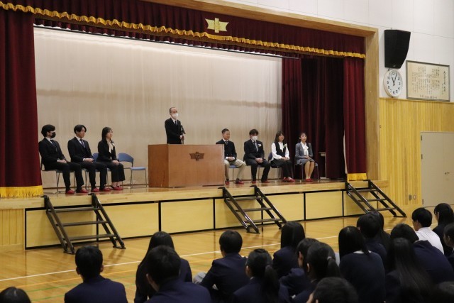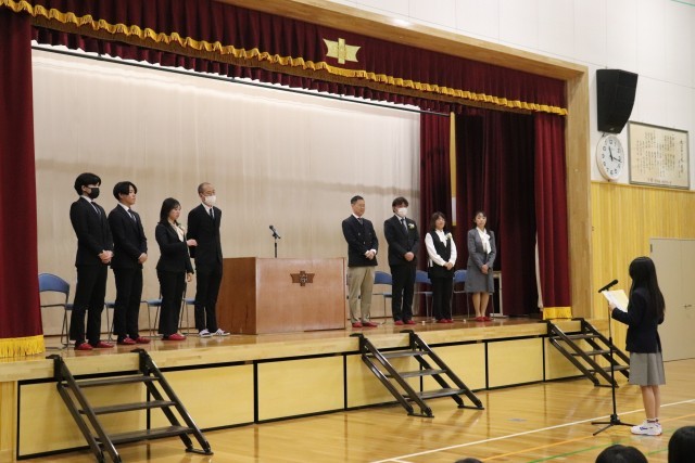 3月30日、令和7年度の離任式がありました。お世話になった教職員のみなさまとお別れの式です。短い方で1年間、長い方で9年間、この大淀中学校で子ども達のために心を尽くし、力を尽くしてくださったみなさまです。離任式では、どの教職員の方もこれからの生徒のみんなの幸せにつながる言葉を伝えてくださいました。そして、いつも落ち葉を掃き、緑を育て、学校をきれいにしてくださった管理用務員さんもご退職でした。長い間、本当にありがとうございました。離任式にご参会いただいた、卒業生のみなさん、PTA本部役員のみなさま、保護者のみなさま、ありがとうございました。