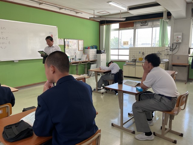 2年生理科の授業では、実験に向けて、予習することの大切さを先生から指示を受けていました。