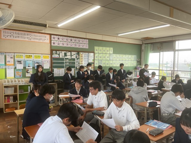 一人ひとりがバインダーを持ち、3年生の授業の様子をメモします。