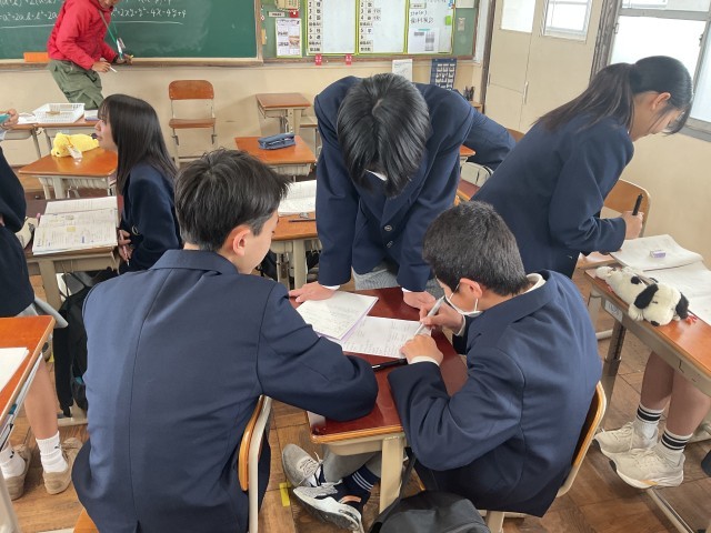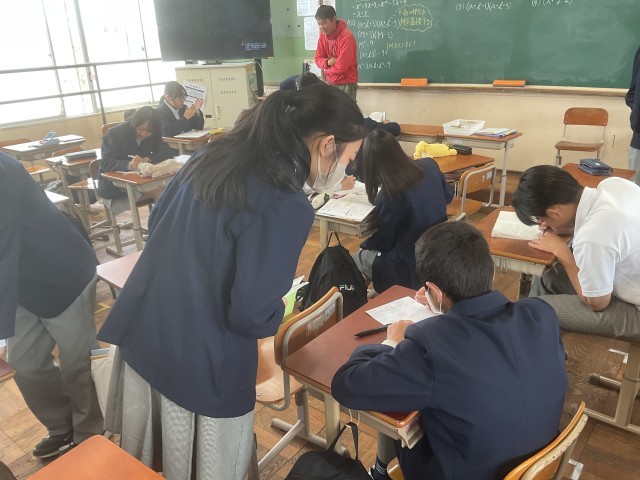 3年生の数学の授業では、教え合い、学び合う姿がたくさん見られました。