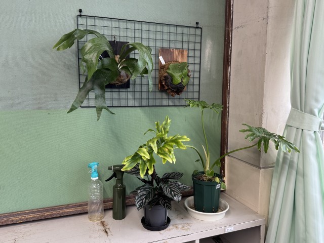 *写真は、1年生のそれぞれの教室の後ろで育てられている観葉植物たちです。教室で過ごすみんなの心が潤うように、入学前、先生たちが緑コーナーをつくってくれました。