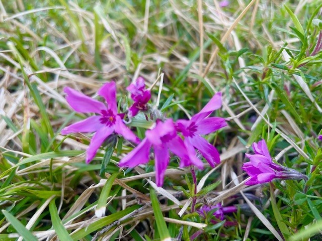 *写真は、校門近くの花壇に咲いた芝桜です。可憐にひたむきに咲いています。花言葉は「一致」「協調」「合意」 仲間と協力、一致団結して頑張る2年生にぴったりですね!