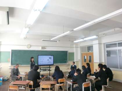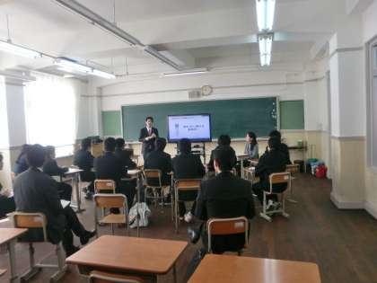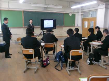 11月6日(土)午前中京都労働局と本校及び京都市教育委員会共催で「地元企業の高校内企業説明会」を実施しました。厳しい就職環境の中,高校就学中の早い段階から生徒の職業意識形成を図ることを目的として,京都府内で初めて実施されました。本校からは就職希望を持つ1・2年生約60名と保護者5名ほどの参加がありました。参加していただいた企業は,株式会社カシフジ・株式会社島津製作所・日新電機株式会社・日本輸送機株式会社・株式会社堀場製作所・株式会社ワコールの計6社です。それぞれ人事担当の方々にお越しいただき,会社の経営理念や高校生が入社した場合のキャリアパスなどについて細かくご指導いただきました。また高校時代につけておいてほしい基礎力などについてもアドバイスいただきました。貴重な半日だったと思います。危険物の資格試験や,部活動の公式戦などで参加できなかった生徒も多く残念ですが,”工業高校ならでは”の機会を今後も増やしていければと思います。