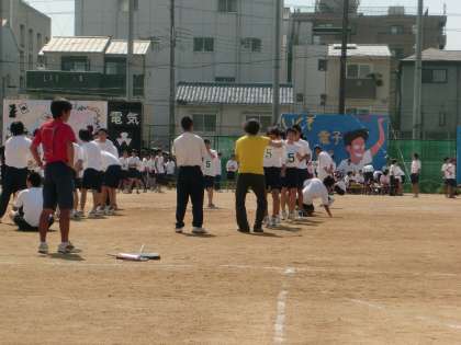 写真は、障害物競走(じゃんけん障害の部)、大縄跳び、騎馬リレーの様子です。