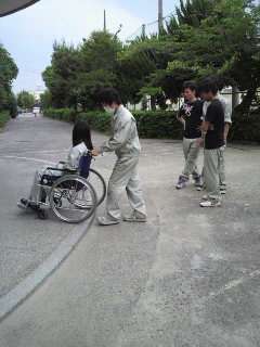 6月8日(金)機械コース3年生の課題研究『車椅子整備』班 が、京都市洛西ふれあいの里保養研修センターによる車椅子研修を受けました。今回の車椅子体験が、 今後の車椅子整備事業に役立つことを期待しています。