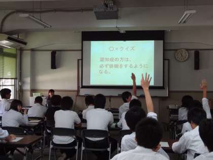 7月17日(火)18日(水)京都市南区社会福祉協議会の協力で『認知症あんしんサポーター養成講座』を実施しています。3年生の家庭科の授業で、市唐橋地域包括支援センターの社会福祉士から認知症の説明を受けたあと、グループワークを行いました。