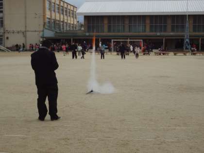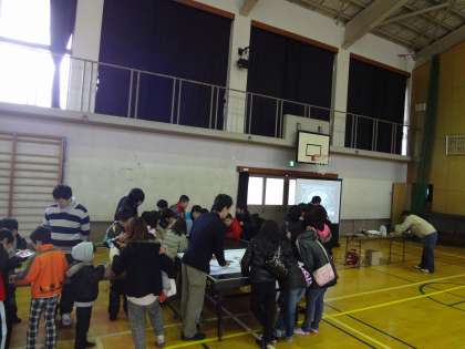 12月8日(土)南少年補導委員会唐橋支部や小学校PTA、唐橋児童館の主催で行われたイベントに生徒3名、教員6名で参加しました。本校からは、じゃんけんをするロボットハンド、ライントレースカー、手回し発電で動く車、映像、ロケットなどを持参し、子供たちに楽しんでもらいました。体育館は休む暇がないほどの大賑わいでした。