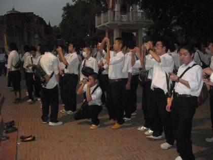 アユタヤ遺跡の観光では、交通渋滞などの影響もあり観光時間を少し短縮しましたが、レンガ造りの巨大な仏塔や、木の根に抱かれた仏像など、多くの生徒が感激しながら記念写真を撮っていました。