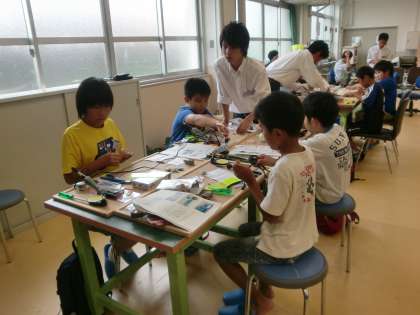 昨日8月6日(火)ソーラーカー製作・タイムレース・距離競技を行いました。小学5年生から中学3年生まで30名の参加がありました。参加者の皆さんは、非常に熱心にソーラーカーの製作、調整に取り組んでいました。製作後には、10メートルの距離を競うタイムレースで、、見事、小学6年生のI君が優勝しました。また、距離競技では、25m75で中学1年のO君が優勝しました。