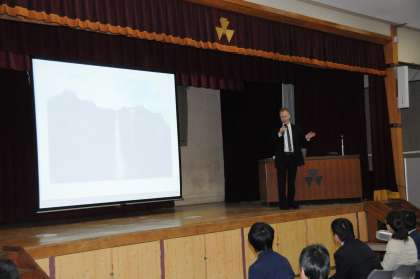 また、「学校見学会」の全体会では、ブルース・ウィットレット氏(写真右)に「夢に向かって」というご講演をいただきましたが、それも好評をいただきました。「好きか嫌いかではなく、できるかできないかでもなく、やるかやらないかだ」という言葉には、会場にいた高校生にとっても心に響く言葉だったように思います。