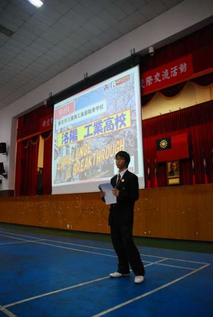生徒代表による学校紹介プレゼンテーションおよび和太鼓の演奏の様子です。