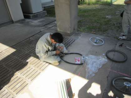 機械コースの3年生課題研究で取り組んでいるテーマのひとつをご紹介します。「空飛ぶ車いす」というテーマ名で、2年前から実施しており日本で使用された古い車いすを修理して、スリランカ、タイ、韓国などアジア各国に送って使ってもらうプロジェクトに参画しています。今年は10台を目標に、グループのメンバー6名が修理に懸命に取り組んでいます。完成した車いすはNPO法人に引渡します。