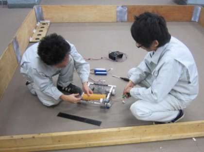 京都ものづくりコース2年生のものづくり設計では、4、5名のチームに分かれてサッカーロボットの製作に取り組んでいます。各チームとも走行する台車の製作が終了し、ボールを相手ゴールに入れるための機構部分の製作を行っています。来年1月17日に開催予定のロボット競技大会に向けて取組みを加速しています。