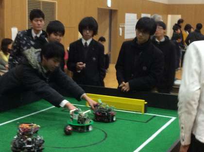 2/1(日)に、伏見工業高校 呉竹館にて、ロボカップジュニア京都ノード大会2015が開催され、本校電子コースの2年生、3年生の課題研究から合計2チームが出場しました。
