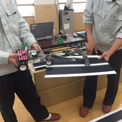 「マイコンカーラリー」「真空管アンプの製作」「アプリ開発(Android)」「リモートセンシング技術に関する実験」「ソフトウェア」のチームに分かれ、南実習棟3階東側で展示・説明を行っています。