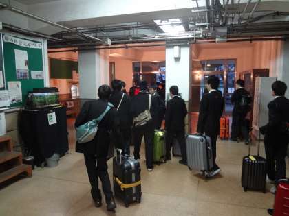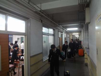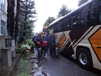 HRでの諸注意の後、バスへ荷物を積み込みんでいます。これからバスで関西国際空港へ向け午前7時に学校出発の予定です。