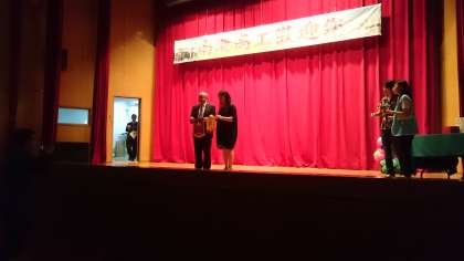 学校交流では、両校代表挨拶の後、記念品交換、両校の校歌斉唱やパフォーマンスを披露しました。