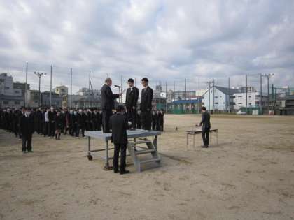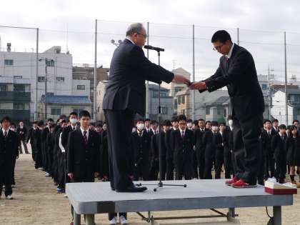 本日3月18日、終業式を執り行いました。式の冒頭各種表彰が行われたのち、引き続き校長訓示では「1年間の成績が出たが、自分がどのように取組んで来たか、しっかりと振り返りを行って新年度に向かって進んでほしい。どんなに成績が良くても振り返りをすれば必ず課題が出てくるはず。振り返りがなければダメ。」という話がありました。