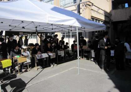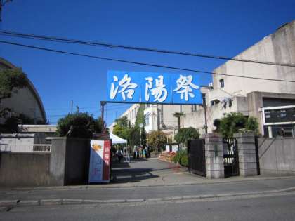 正門には『洛陽祭』の大きなアーケードが掲げられ、模擬店も徐々に活気を帯びてきました。