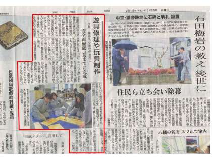本校システム工学科テクノシステムコース2年生の創造研求2地域貢献班が取り組んだ保育園連携ならびに企業連携事業の内容が、平成27年3月20日の京都新聞に掲載されました。