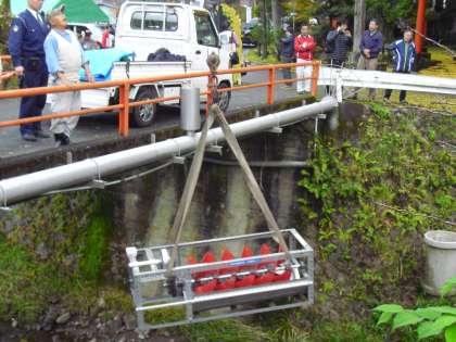 工学探究コースでは2年生を中心に、発電用らせん水車とバイク用ライトを利用したライト持ち込み、ライトアップに参加しました。