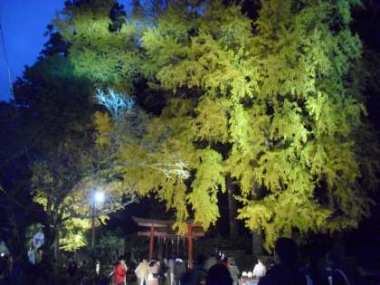 このライトアップイベントは、毎年秋に開かれるもので岩戸落葉神社にある黄色に色づいた大きなイチョウの木を1日だけライトアップするイベントです。