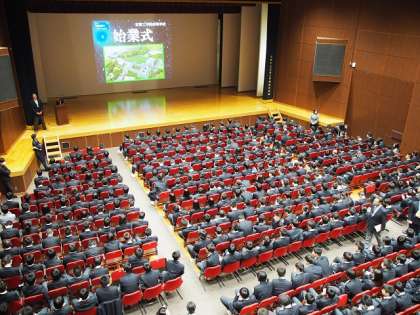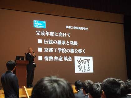 4月10日,京都工学院高校として初めて三学年が勢ぞろいしての始業式が執り行われました。校長の挨拶では,「完成年度に向けて,伝統の継承と発展,京都工学院の礎を築く,情熱・熱意・執念の三点を皆で共有したい。そして,様々な分野で成果が求められる一年になるが,能力×熱意×考え方で成果は大きく変わることを意識していこう。」との講話がありました。