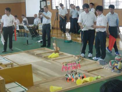 工業系学科の高校生が,技術とアイデアを生かして製作した自作ロボットでその性能を競う「第23回京都府高等学校ロボット競技大会」が下記のとおり開催されました。
