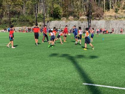 11月18日(日),素晴らしい天気の中,伏見カップ第6回小学生タグラグビー選手権大会が盛大に開催されました。各小学校が練習の成果を最大限に発揮し白熱した試合を繰り広げてくれました。本校の生徒,伏見クラブの中学生とも交流し,試合も行いました。