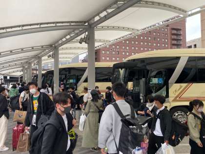 3年生の研修旅行団は,全2日間の行程を予定通り終え,京都駅八条口へ到着・解散しました。バスでの長旅お疲れさまでした。