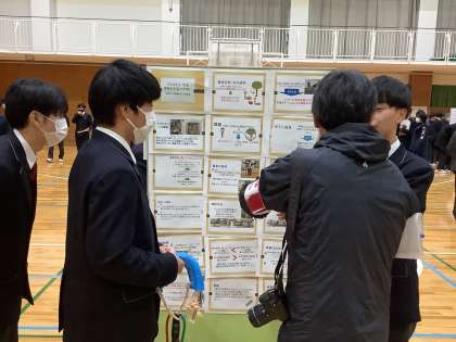 2月1日(木)は、それぞれの最終報告会として、プロZERO・プロゼミ1の合同ポスター発表会を実施しました。プロZERO(1年生)では、学校をテーマに課題を設定し、その解決に取り組む「工学院PBL」の内容を、プロゼミ1(2年生)では【家・学校・京都・日本・世界・宇宙】の中から、生徒が自らの興味関心の高いテーマを選択し、その中でチームを組んで課題設定や解決方法の提案・検証を行う取組みについて発表を行いました。