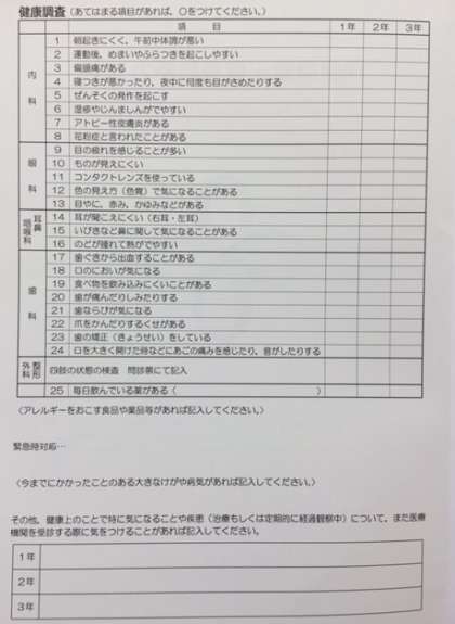 本日保健調査カードを配布致しました。