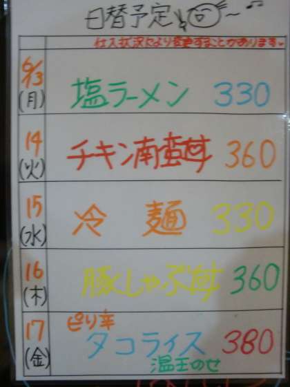 下の写真は,来週からの日替メニューを参考までに掲載しています。