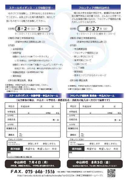 特に8/2,3のスクールガイダンスでは、工学実習体験を行います。